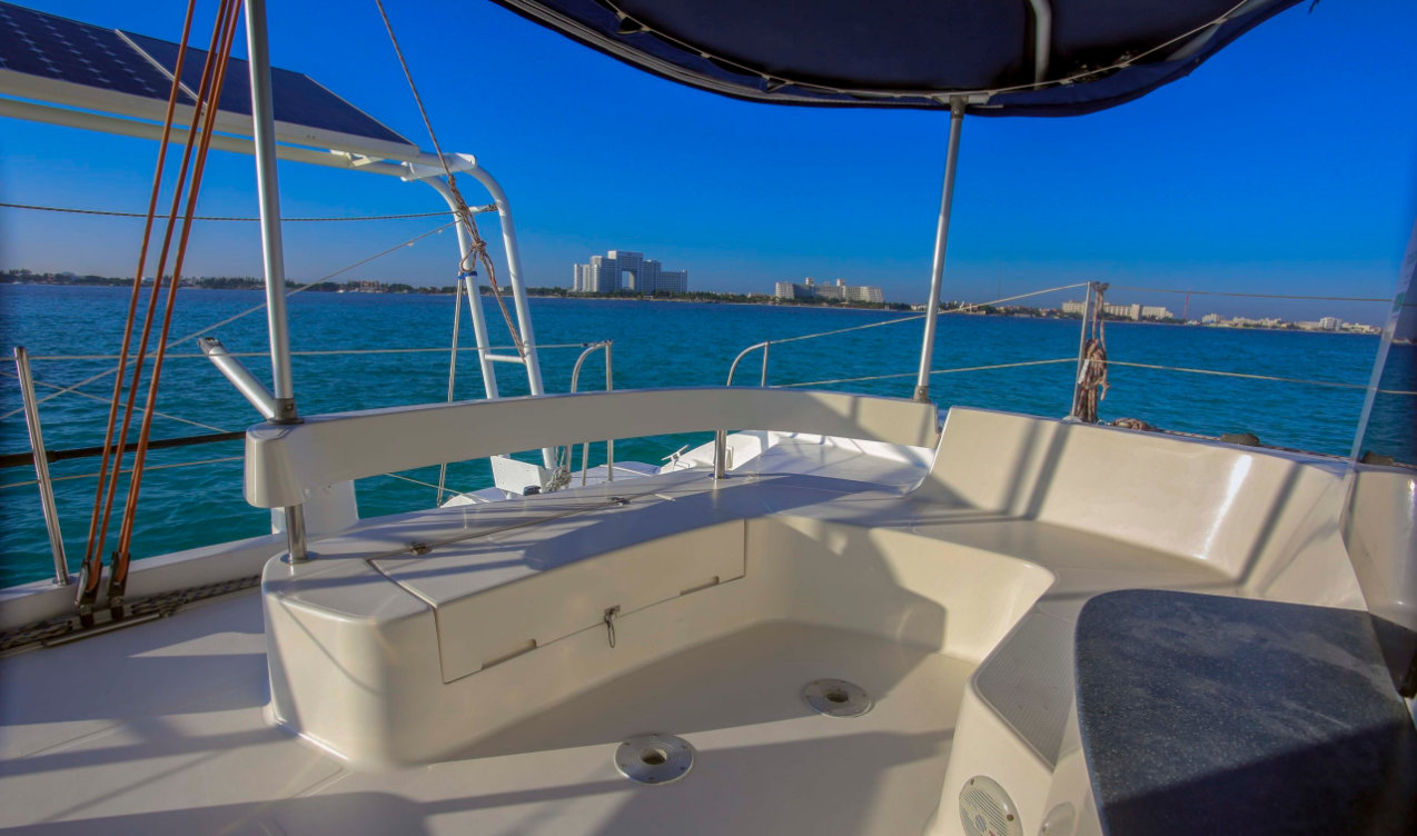 The route is Cancun – Isla Mujeres: The tour includes water, soft drinks, beers, unlimited national open bar (Rum, Tequila, Vodka, Whiskey) and snorkeling equipment.